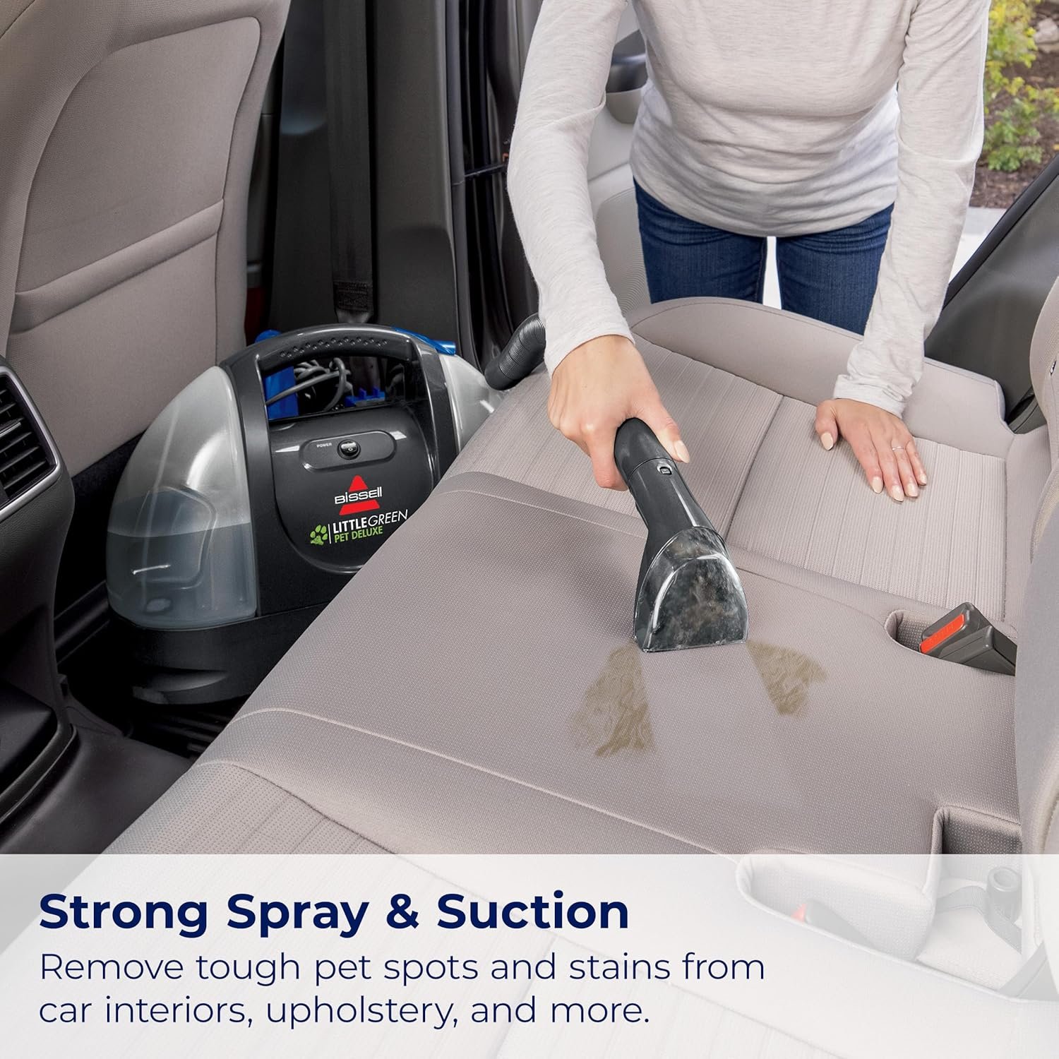 The BISSELL Little Green Portable Carpet Cleaner 3353 offers powerful, deep cleaning for carpets, furniture, and car interiors. With its strong suction, removable water tanks, and lightweight design, it quickly tackles pet stains and everyday messes. Ideal for small spaces and quick cleanups, this portable cleaner delivers professional-grade results at home. Keep your home fresh and spotless—get the cleaning power of BISSELL today.