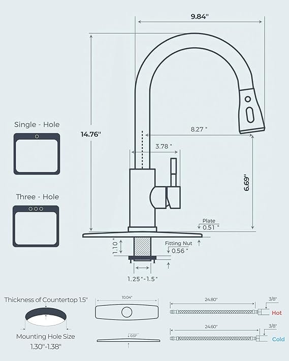 - Installation: Compatible with 1 or 3-Hole Sinks; Deck Plate Included